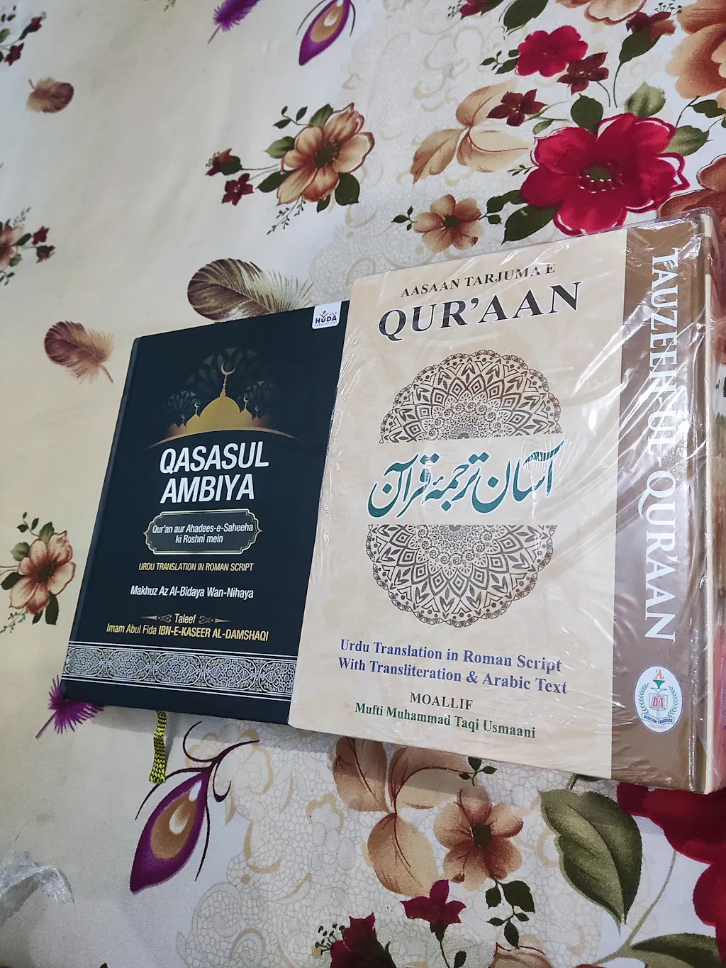 The Quran with Roman script translation and tafseer and Qisasul Ambiya [Roman Urdu] that I purchased is truly outstanding. The translation is clear and the tafseer provides deep knowledge and understanding, making it easier to understand the verses. The quality of the print and binding of the both books is also excellent. Highly recommended for anyone looking to deepen their understanding of the Quran and know about prophets stories.