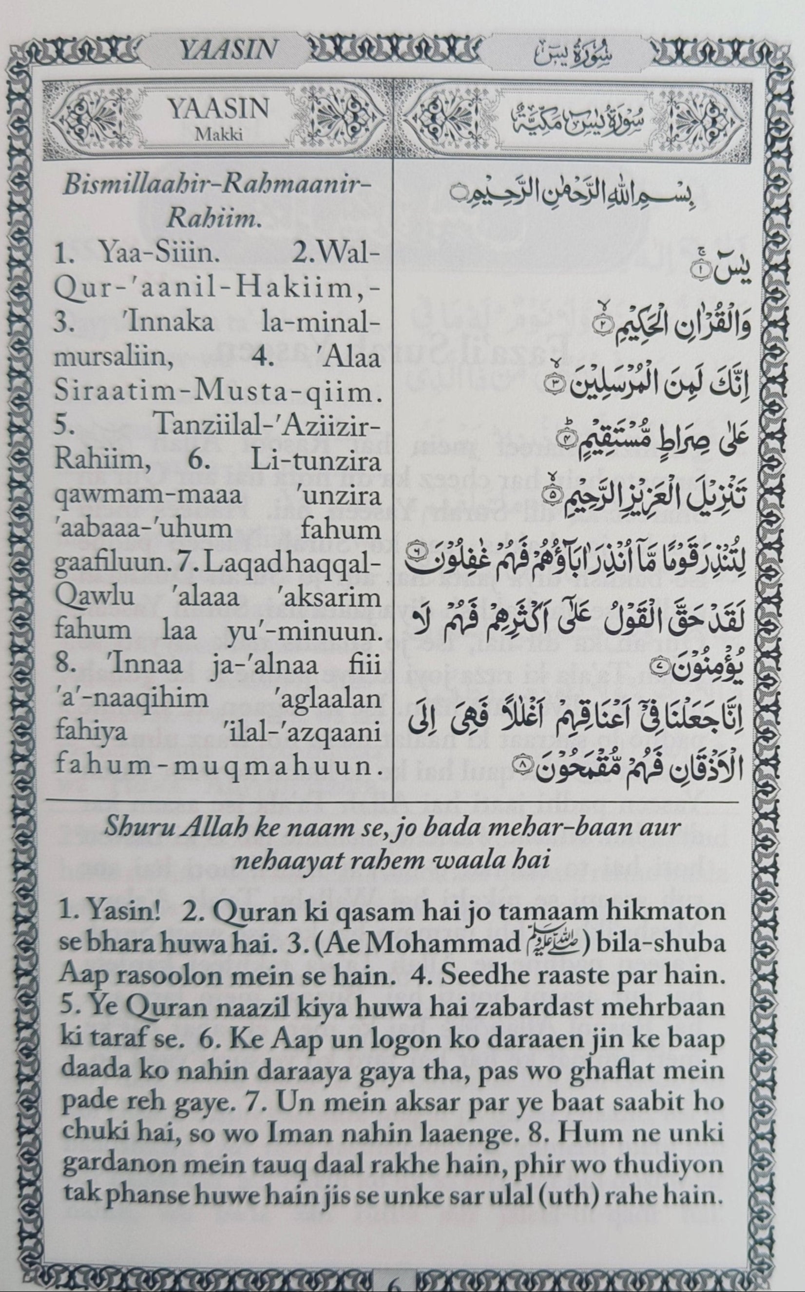 Surah Yasin Urdu Translation in Roman Script with Translitration & Arabic